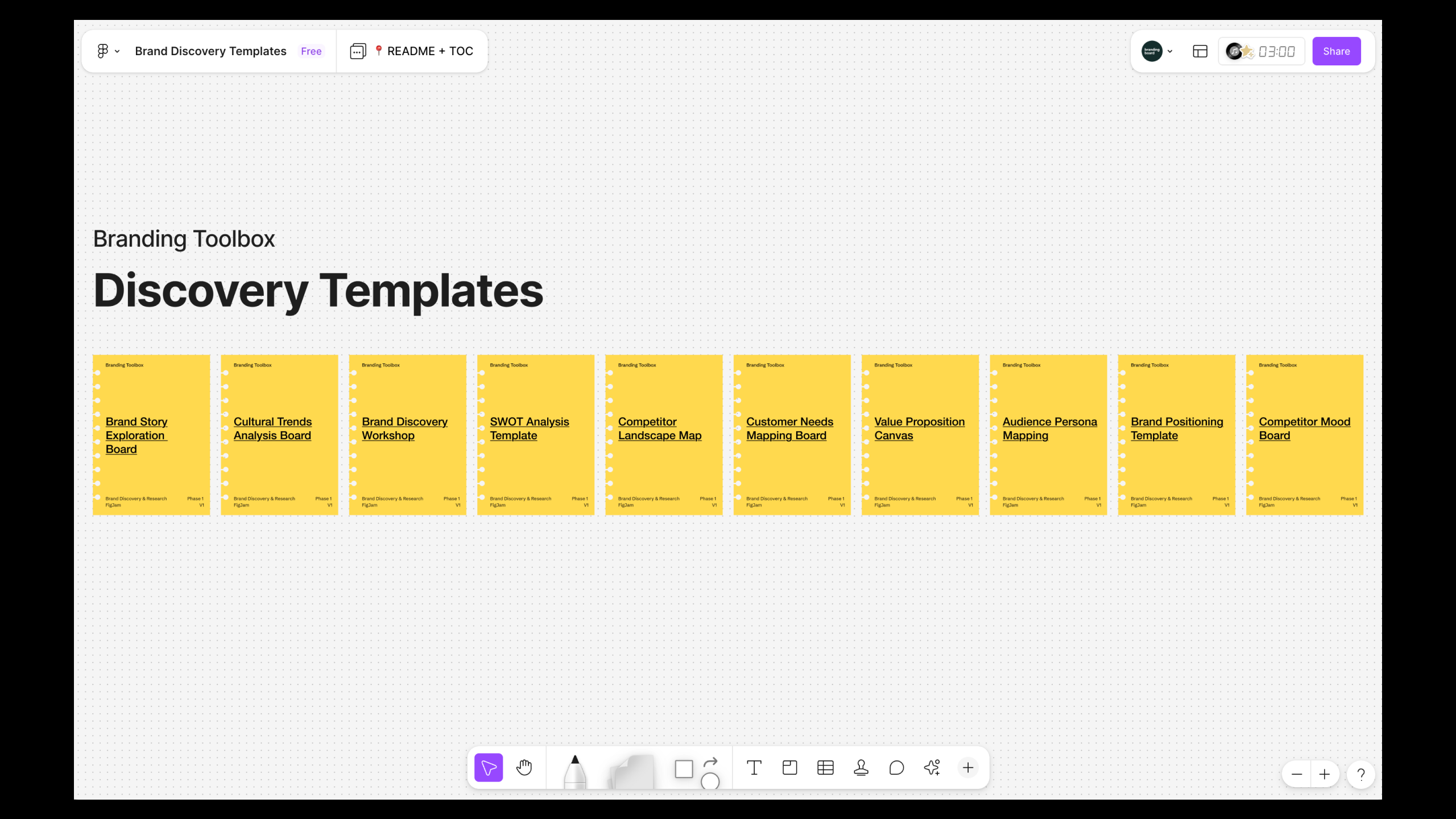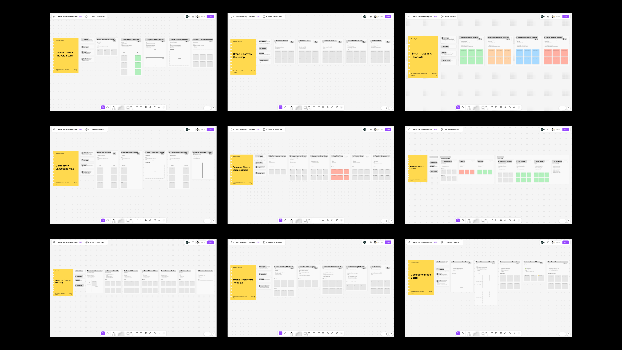 The Brand Discovery Templates are 10 ready-made FigJam boards built for clarity — so you can focus on thinking, not setup.